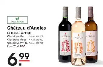 Geniet van de heerlijke Château d'Anglès Classique Red, een biologische wijn uit de regio La Clape in Frankrijk. Deze rode wijn heeft een rijke smaak met tonen van rijp rood fruit en kruiden. Art.nr. 816702. De Château d'Anglès wijnen zijn verkrijgbaar in verschillende varianten, waaronder de Classique Rosé (Art.nr. 816723) en Classique White (Art.nr. 816710). De flessen hebben een inhoud van 75 cl en zijn verkrijgbaar voor slechts 7.99 per fles. Ontdek de smaakvolle wijnen van Château d'Anglès en laat je verrassen door de kwaliteit en het vakmanschap van dit gerenommeerde wijnhuis. ANGLES, ANGLES.