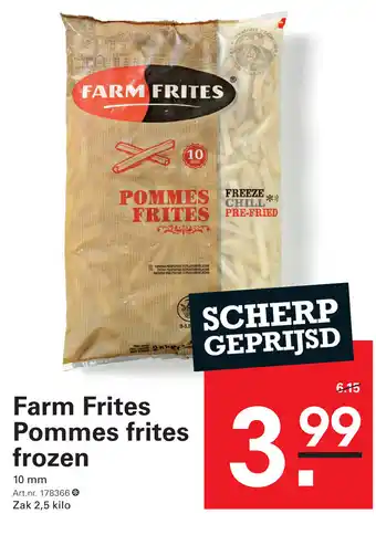 De Farm Frites Pommes frites frozen is momenteel met korting verkrijgbaar bij Sligro. Hier vind je alle details over prijs, geldigheidsduur en actievoorwaarden. Vergeet niet om ook andere aanbiedingen en deals voor Farm Frites Pommes frites frozen te bekijken zodat je zeker weet dat je de beste prijs betaalt. De kortingsactie loopt van 29-01-2026 tot 16-02-2026. Is de actie inmiddels verlopen? Geen zorgen, vergelijk dan soortgelijke aanbiedingen of volg de productcategorie voor toekomstige prijsverlagingen. Zo koop je altijd met voordeel.Veelgestelde vragen over Farm Frites Pommes frites frozen