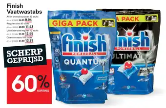 Deze Finish Vaatwastabs is nu in de aanbieding bij Sligro. Op deze pagina vind je alle informatie over actuele prijzen, actievoorwaarden en looptijd. Vergelijk ook andere relevante aanbiedingen en acties rondom Finish Vaatwastabs, zodat je altijd de slimste keuze maakt. De aanbieding loopt van 19-02-2026 tot en met 09-03-2026. Is de actie verlopen? Geen probleem – vergelijkbare deals vind je altijd via deze pagina. Volg eventueel de productcategorie om automatisch op de hoogte te blijven van nieuwe aanbiedingen of prijsdalingen voor Finish Vaatwastabs.Veelgestelde vragen over Finish Vaatwastabs