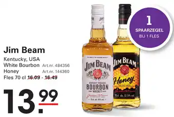 Geniet van de authentieke smaak van Jim Beam Kentucky Straight Bourbon, een heerlijke bourbon whisky uit de VS. Deze White Bourbon heeft een alcoholpercentage van 40% vol. en wordt geleverd in een fles van 70 cl. Met zijn rijke en volle smaak is Jim Beam een favoriet onder whisky liefhebbers over de hele wereld. Probeer ook eens de Jim Beam Honey variant, een zoete en zachte bourbon met een alcoholpercentage van 32.5% vol. Bij aankoop van 1 fles Jim Beam ontvang je een spaarzegel. Bestel nu jouw fles Jim Beam en geniet van de unieke smaak van deze klassieke bourbon whisky uit Kentucky.