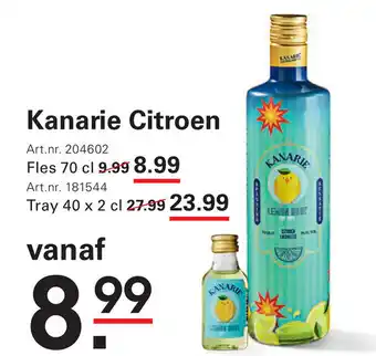 De prijs van de Kanarie Citroen kan ook teruggevonden worden hierboven op de pagina, samen met de datum van wanneer de aanbieding beschikbaar is. Ook kun je de prijzen in de huidige Sligro folder of op de Sligro website controleren. De aanbiedingen verzekeren je van het kopen van de Sligro producten voor de laagste prijs.