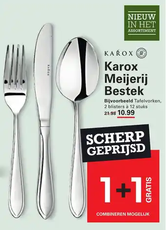 Ontdek nu het nieuwe Karox Meijerij Bestek, zoals Tafelvorken, tegen een scherpe prijs! Deze set bestaat uit 2 blisters à 12 stuks voor slechts 10.99. Profiteer nu van de 1+1 gratis actie, waardoor je eindeloos kunt combineren. Het bestek is van hoge kwaliteit en perfect voor dagelijks gebruik of speciale gelegenheden. Met het Karox Meijerij Bestek geef je jouw tafelsetting een stijlvolle uitstraling. Mis deze kans niet en haal snel jouw set in huis. Bestel nu en geniet van de beste prijs-kwaliteitverhouding. Het Karox Meijerij Bestek is een aanwinst voor iedere keuken en maakt van elke maaltijd een feestje. Bestel vandaag nog en ervaar het zelf!
