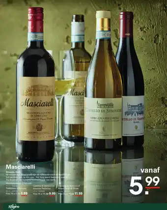 Sligro biedt naast de Masciarelli een ruime collectie producten aan. Houd de wekelijkse Sligro folder in de gaten om de beste aanbiedingen en acties te vinden. Naast Masciarelli, kunt u ook de volgende aanbiedingen vinden: Masciarelli Montepulciano d'Abruzzo, Masciarelli Montepulciano d'Abruzzo & Masciarelli Trebbiano d'Abruzzo.