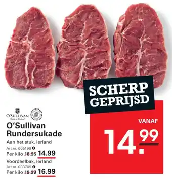 Geniet van de heerlijke smaak van Ierland met O'Sullivan Rundersukade. Dit hoogwaardige stuk vlees is van uitstekende kwaliteit en perfect voor het bereiden van smaakvolle stoofschotels en braadstukken. O'Sullivan Rundersukade is nu extra scherp geprijsd vanaf slechts 14.99 per kilo. Profiteer van deze aanbieding en haal een stukje Ierland in huis. Het product heeft art.nr. 005199 en is verkrijgbaar in de voordeelbak met art.nr. 003705. Normaal gesproken kost O'Sullivan Rundersukade 18.95 per kilo, maar nu betaal je slechts 14.99. Mis deze kans niet en geniet van de authentieke smaak van O'Sullivan Rundersukade, een ware Taste of Ireland.