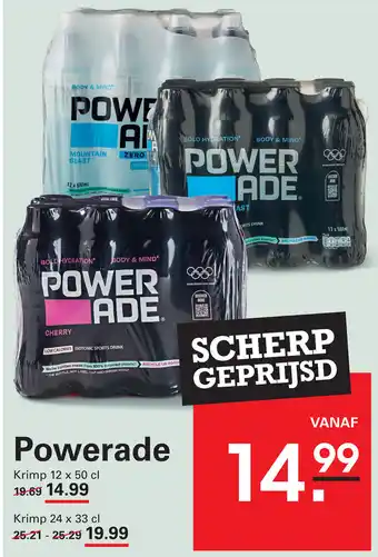 De aanbieding is verkrijgbaar in verschillende winkels, bekijk alle producten om de goedkoopste Powerade te krijgen. Als je graag wilt kijken of het artikel met meer korting te koop is in een andere winkel, bekijk de categorie 'Groothandel'. Wellicht vind je deze aanbiedingen ook interessant: Powerade, Powerade & Powerade Mountain blast 50cl 5x.