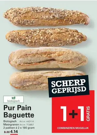 Biologisch Pur Pain Baguette Meergranen 2 pakken voor de prijs van 1