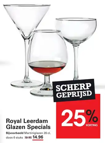 SCHERP GEPRIJSD: Royal Leerdam Glazen Specials, Bijvoorbeeld Martiniglazen 26 cl, doos 6 stuks 19.95 14.96, 25% KORTING