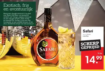 Breng een vleugje avontuur in je glas met Safari! De likeur vol exotische smaken van mango, papaja, maracuja en een vleugje limoen. Zoet, fruitig en heerlijk fris. Perfect in de mix met bruiswater en een schijfje limoen, of als shot. Ontdek de smaak van het avontuur! Safari Exotische Fruitlikeur is scherp geprijsd en verkrijgbaar in een literfles. Geniet van de exotische smaken en laat je meenemen op een smaakvolle reis naar verre oorden. Probeer Safari Exotische Fruitlikeur en voeg een tropisch tintje toe aan je drankjes. Ideaal voor feestjes, borrels of gewoon om van te genieten in goed gezelschap. Bestel nu en ervaar de heerlijke smaak van Safari!