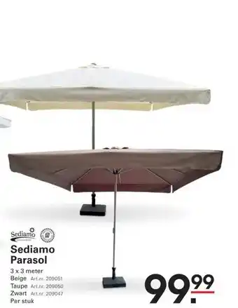 De prijs van de Sediamo Parasol kan ook teruggevonden worden hierboven op de pagina, samen met de datum van wanneer de aanbieding beschikbaar is. Ook kun je de prijzen in de huidige Sligro folder of op de Sligro website controleren. De aanbiedingen verzekeren je van het kopen van de Sligro producten voor de laagste prijs.