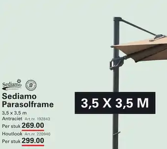 De prijs van de Sediamo Parasolframe kan ook teruggevonden worden hierboven op de pagina, samen met de datum van wanneer de aanbieding beschikbaar is. Ook kun je de prijzen in de huidige Sligro folder of op de Sligro website controleren. De aanbiedingen verzekeren je van het kopen van de Sligro producten voor de laagste prijs.