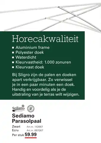 Sediamo Parasolpaal aanbieding bij Sligro – binnenkort verwacht