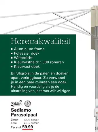 Sediamo Parasolpaal aanbieding bij Sligro – binnenkort verwacht