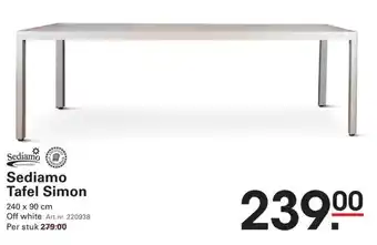De aanbieding is verkrijgbaar in verschillende winkels, bekijk alle producten om de goedkoopste Sediamo Tafel Simon te krijgen. Als je graag wilt kijken of het artikel met meer korting te koop is in een andere winkel, bekijk de categorie 'Groothandel'. Wellicht vind je deze aanbiedingen ook interessant: Sediamo Stoel Simon, Obelink Cyprus 150 tafel - Grey & Obelink Campfold Superlight 120 tafel.