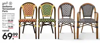Deze Sediamo Terrasstoel Paris is nu in de aanbieding bij Sligro. Op deze pagina vind je alle informatie over actuele prijzen, actievoorwaarden en looptijd. Vergelijk ook andere relevante aanbiedingen en acties rondom Sediamo Terrasstoel Paris, zodat je altijd de slimste keuze maakt. De aanbieding loopt van 19-02-2026 tot en met 09-03-2026. Is de actie verlopen? Geen probleem – vergelijkbare deals vind je altijd via deze pagina. Volg eventueel de productcategorie om automatisch op de hoogte te blijven van nieuwe aanbiedingen of prijsdalingen voor Sediamo Terrasstoel Paris.Veelgestelde vragen over Sediamo Terrasstoel Paris