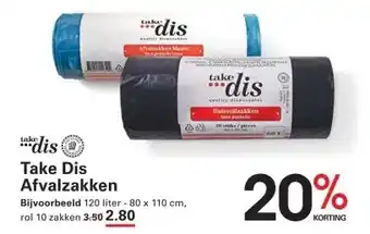 Take Dis Afvalzakken met handvat 61 x 80cm 60L HDPE 20my aanbieding en online acties bij Sligro