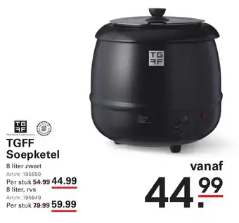 Neem een kijkje voor de goedkoopste producten tussen alle aanbiedingen! Als je wilt weten of Sligro de hoogste korting voor TGFF Soepketel heeft, vergelijk het op de Topic page of met andere winkels.