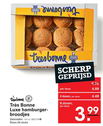 Très Bonne Luxe hamburger- broodjes aanbieding bij Sligro
