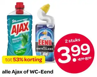 De aanbieding is verkrijgbaar in verschillende winkels, bekijk alle producten om de goedkoopste alle Ajax of WC-Eend te krijgen. Als je graag wilt kijken of het artikel met meer korting te koop is in een andere winkel, bekijk de categorie 'Supermarkt'. Wellicht vind je deze aanbiedingen ook interessant: WC-Eend of Glade, WC Eend toiletblokken en fresh discs & 8x WC Eend Toiletblok Active Clean.