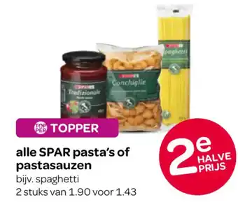 HALVE PRIJS: Alle SPAR pasta's of pastasauzen