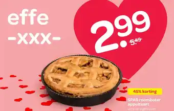 Geniet nu van de heerlijke SPAR roomboter appeltaart, vers uit eigen oven. Deze smeuïge taart met een vleugje kaneel en knapperige appelschijfjes is perfect voor bij de koffie of als dessert. Normaal kost deze lekkernij 5.49, maar nu tijdelijk met 45% korting voor slechts 2.99. Profiteer snel van deze aanbieding en trakteer jezelf op een stukje hemelse appeltaart. De combinatie van de romige roomboter en de zoete appels zorgt voor een ware smaaksensatie. Haal de SPAR roomboter appeltaart vandaag nog in huis en verras jezelf en je gasten met deze ambachtelijke lekkernij. Deze aanbieding is geldig zolang de voorraad strekt, dus wacht niet te lang!