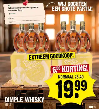 Nu in de aanbieding bij Super Dirck 3: DIMPLE GOLDEN SELECTION WHISKY✅ Actie geldig van 28-01 t/m 10-02.