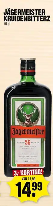 JÄGERMEISTER KRUIDENBITTER 70 cl VAN 17,99 VOOR 14,99