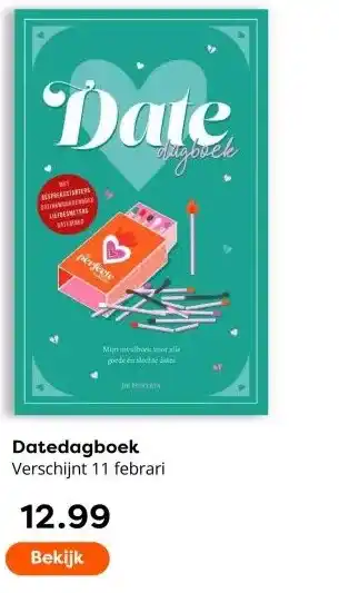 De aanbieding is verkrijgbaar in verschillende winkels, bekijk alle producten om de goedkoopste Datedagboek te krijgen. Als je graag wilt kijken of het artikel met meer korting te koop is in een andere winkel, bekijk de categorie 'Boeken en Muziek'. Wellicht vind je deze aanbiedingen ook interessant: Datedagboek, aanbieding 2 & aanbieding 3.