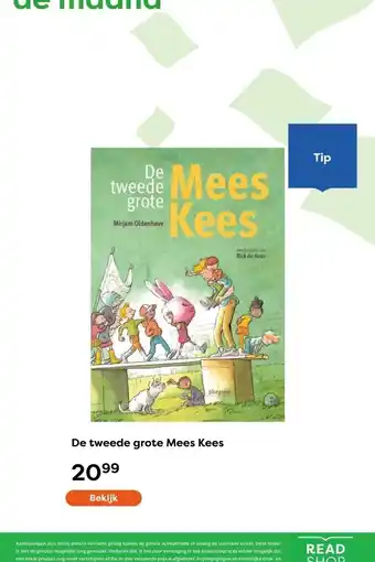 De prijs van de De tweede grote Mees Kees kan ook teruggevonden worden hierboven op de pagina, samen met de datum van wanneer de aanbieding beschikbaar is. Ook kun je de prijzen in de huidige The Read Shop folder of op de The Read Shop website controleren. De aanbiedingen verzekeren je van het kopen van de The Read Shop producten voor de laagste prijs.
