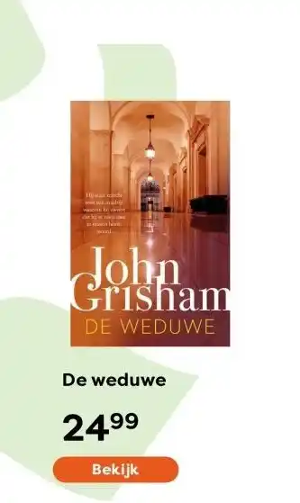 De aanbieding is verkrijgbaar in verschillende winkels, bekijk alle producten om de goedkoopste De weduwe te krijgen. Als je graag wilt kijken of het artikel met meer korting te koop is in een andere winkel, bekijk de categorie 'Boeken en Muziek'. Wellicht vind je deze aanbiedingen ook interessant: De weduwe, De weduwe John Grisham & De Ruijter Hagelfeest.
