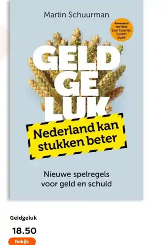 Geldgeluk is een heerlijk, helder boek geschreven door Martin Schuurman en Annemarie van Gaal. In dit boek wordt betoogd dat Nederland stukken beter kan als het aankomt op geld en schuld. De auteurs introduceren nieuwe spelregels voor financiële vrijheid en geluk. Voor slechts 18.50 euro kun je dit boek aanschaffen en ontdekken hoe je jouw financiële situatie kunt verbeteren. Of je nu worstelt met schulden of gewoon meer grip wilt krijgen op je geldzaken, Geldgeluk biedt praktische tips en inzichten die voor iedereen waardevol zijn. Laat je inspireren en leer hoe je op een gezonde manier met geld kunt omgaan. Bestel nu en begin vandaag nog aan jouw reis naar financiële welvaart!