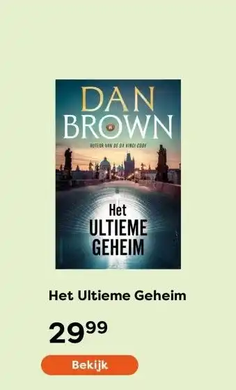 De aanbieding is verkrijgbaar in verschillende winkels, bekijk alle producten om de goedkoopste Het Ultieme Geheim te krijgen. Als je graag wilt kijken of het artikel met meer korting te koop is in een andere winkel, bekijk de categorie 'Boeken en Muziek'. Wellicht vind je deze aanbiedingen ook interessant: Het Ultieme Geheim, Het ultieme geheim Dan Brown & Mijn geheim bookazine.