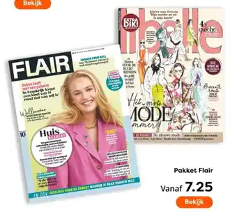 De aanbieding is verkrijgbaar in verschillende winkels, bekijk alle producten om de goedkoopste Pakket Flair te krijgen. Als je graag wilt kijken of het artikel met meer korting te koop is in een andere winkel, bekijk de categorie 'Boeken en Muziek'. Wellicht vind je deze aanbiedingen ook interessant: Pakket Flair, Pakket Libelle & Pakket Libelle.