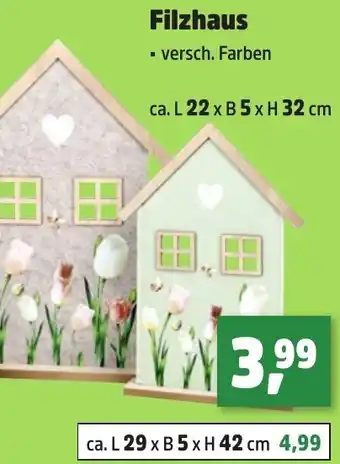 Filzhaus 22 x 5 x 32 cm