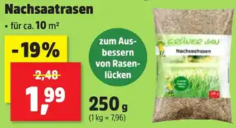 Met GRÜNER JAN Nachzaadgras kunt u eenvoudig kale plekken in uw gazon herstellen. Dit product is speciaal ontworpen voor het verbeteren van de grasmat en is geschikt voor ongeveer 10 vierkante meter. Profiteer nu van de tijdelijke korting van 19% en betaal slechts 2,48 in plaats van 1,99 per 250 gram. De hoogwaardige zaden zorgen voor een snelle en gezonde groei van nieuw gras, waardoor uw gazon er weer groen en weelderig uitziet. Geef uw tuin de verzorging die het verdient en geniet van een prachtig gazon het hele jaar door. Bestel nu GRÜNER JAN Nachzaadgras en geniet binnenkort van een perfecte grasmat!