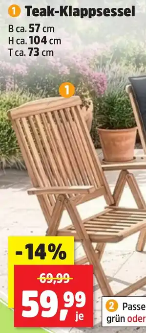 Teak Klappsessel - B ca. 57 cm, H ca. 104 cm, T ca. 73 cm