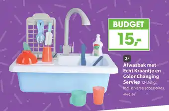 De prijs van de Afwasbak met echt kraantje en color changing servies kan ook teruggevonden worden hierboven op de pagina, samen met de datum van wanneer de aanbieding beschikbaar is. Ook kun je de prijzen in de huidige Top1Toys folder of op de Top1Toys website controleren. De aanbiedingen verzekeren je van het kopen van de Top1Toys producten voor de laagste prijs.