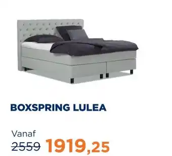 De prijs van de Boxspring Lulea kan ook teruggevonden worden hierboven op de pagina, samen met de datum van wanneer de aanbieding beschikbaar is. Ook kun je de prijzen in de huidige TotaalBED folder of op de TotaalBED website controleren. De aanbiedingen verzekeren je van het kopen van de TotaalBED producten voor de laagste prijs.
