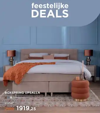 TotaalBED biedt naast de Boxspring Upsalla een ruime collectie producten aan. Houd de wekelijkse TotaalBED folder in de gaten om de beste aanbiedingen en acties te vinden. Naast Boxspring Upsalla, kunt u ook de volgende aanbiedingen vinden: Boxspring Upsalla, Boxspring Bahama & Boxspring Venice.