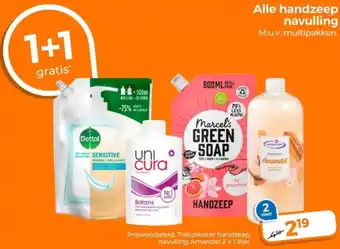 Alle handzeep navulling 2 x 1 liter 1+1 gratis