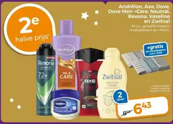 Andrélon, Axe, Dove, Dove Men +Care, Neutral, Rexona, Vaseline en Zwitsal aanbieding en online acties bij Trekpleister