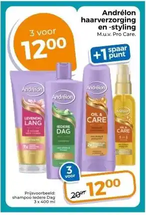 Andrélon haarverzorging en -styling M.u.v. Pro Care. korting bij Trekpleister