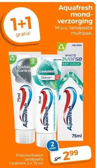 De aanbieding is verkrijgbaar in verschillende winkels, bekijk alle producten om de goedkoopste Aquafresh mond- verzorging te krijgen. Als je graag wilt kijken of het artikel met meer korting te koop is in een andere winkel, bekijk de categorie 'Drogist en Parfumerie'. Wellicht vind je deze aanbiedingen ook interessant: Aquafresh mond verzorging, 2TH mond- verzorging & Sensodyne mond verzorging.