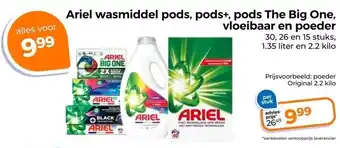 Ariel wasmiddel pods, pods+, pods The Big One, vloeibaar en poeder aanbieding bij Trekpleister