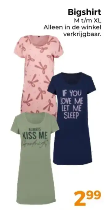 Bigshirt M t/m XL Alleen in de winkel verkrijgbaar.