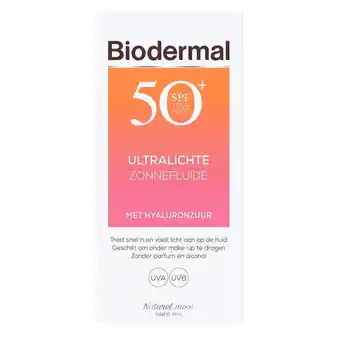 Actuele Biodermal Ultralichte Zonnefluïde SPF50+ met Hyaluronzuur aanbieding bij Trekpleister van 16-02 t/m 22-02.