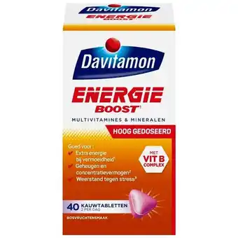 De aanbieding is verkrijgbaar in verschillende winkels, bekijk alle producten om de goedkoopste Davitamon Energie Boost¹ Hooggedoseerde Bosvruchten Kauwvitaminen te krijgen. Als je graag wilt kijken of het artikel met meer korting te koop is in een andere winkel, bekijk de categorie 'Drogist en Parfumerie'. Wellicht vind je deze aanbiedingen ook interessant: Davitamon Energie Boost Forte - multivitamine - bosvruchten - 40 tabletten, Davitamon energie boost ginseng bruistabletten 20tb & Davitamon energie boost forte kauwtabletten 40ktb.