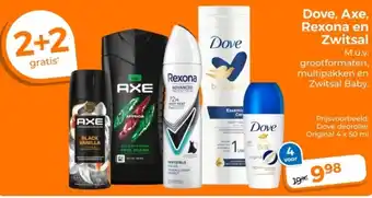 Dove, Axe, Rexona en Zwitsal 50 ml 2+2 gratis
