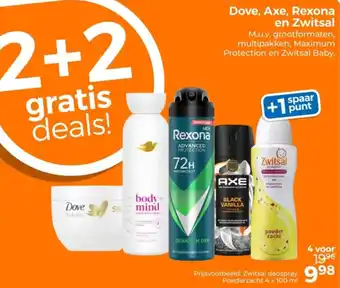 Dove, Axe, Rexona en Zwitsal 4 x 100 ml 2+2 gratis