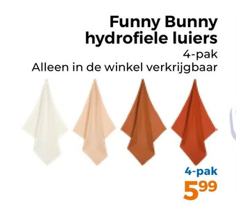 De prijs van de Funny bunny hydrofiele luiers kan ook teruggevonden worden hierboven op de pagina, samen met de datum van wanneer de aanbieding beschikbaar is. Ook kun je de prijzen in de huidige Trekpleister folder of op de Trekpleister website controleren. De aanbiedingen verzekeren je van het kopen van de Trekpleister producten voor de laagste prijs.