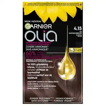 Nu in de aanbieding bij Trekpleister: Garnier Olia 4.15 IJs Kastanje Middenbruin Permanente Haarkleuring✅ Actie geldig van 22-12 t/m 28-12.